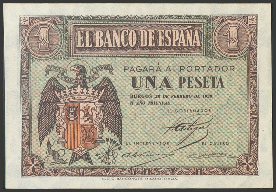 1 Peseta. 28 de Febrero de 1938. Serie F. (Edifil 2017: 427a). Conserva todo su apresto original. SC.