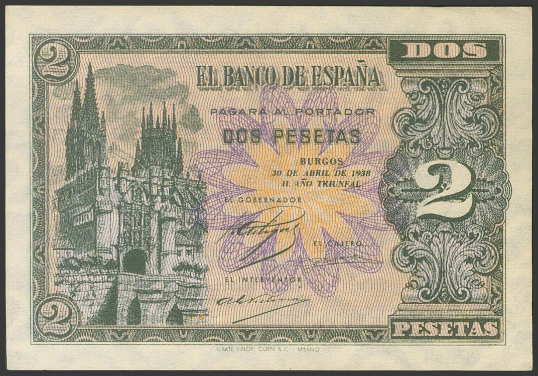 2 Pesetas. 30 de Abril de 1938. Serie C. (Edifil 2017: 429a). Apresto original. SC-.