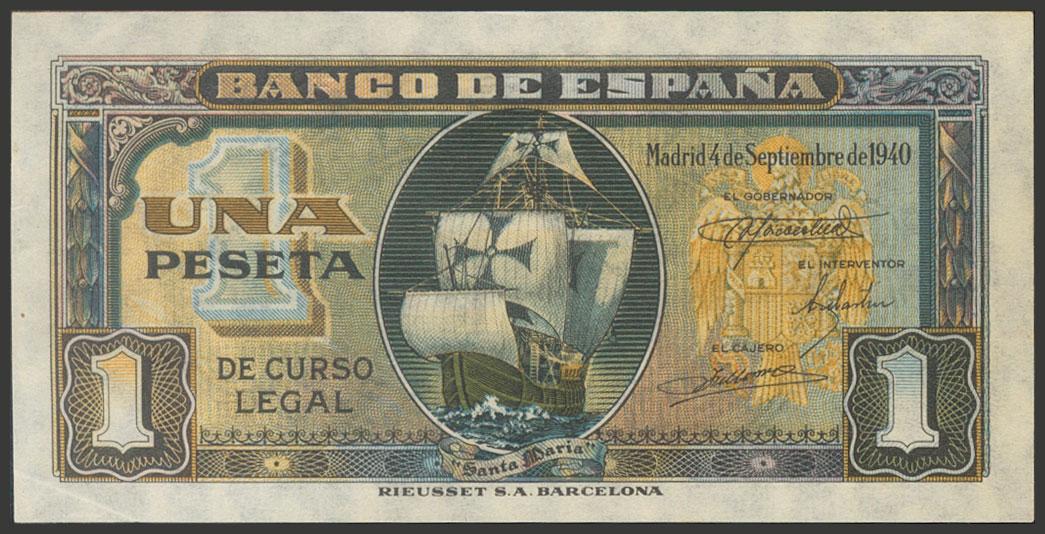 1 Peseta. 4 de Septiembre de 1940. Sin serie. (Edifil 2017: 442). Apresto original. EBC++.