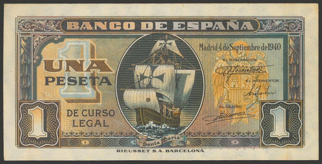 1 Peseta. 4 de Septiembre de 1940. Serie C. (Edifil 2017: 442a). Conserva gran parte del apresto original. EBC.