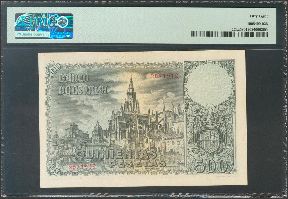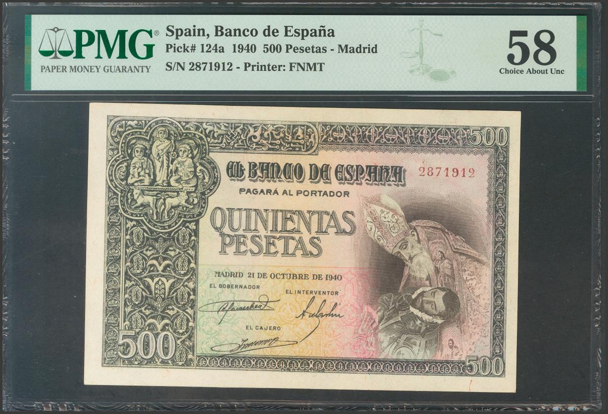 500 Pesetas. 21 de Octubre de 1940. Sin serie. (Edifil 2017: 444). EBC+. Encapsulado PMG58.