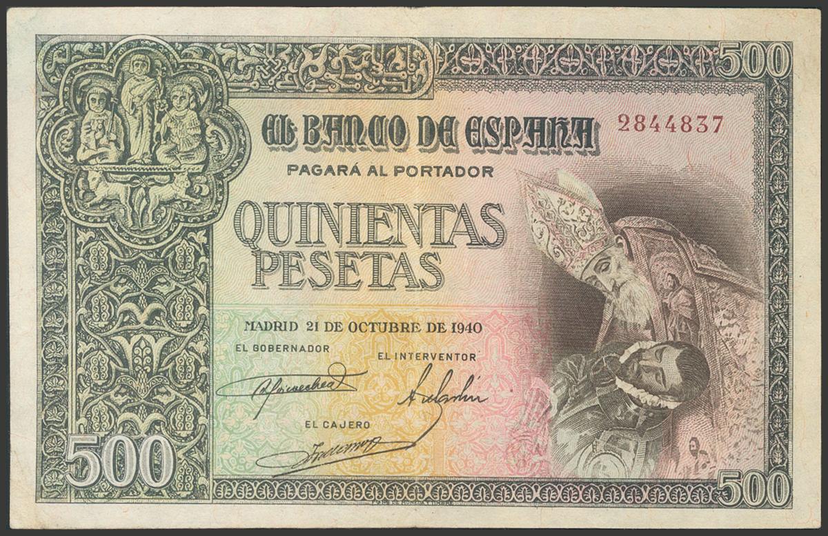 500 Pesetas. 21 de Octubre de 1940. Sin serie. (Edifil 2017: 444). EBC-.