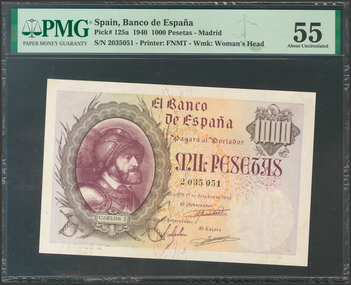 1000 Pesetas. 21 de Octubre de 1940. Sin serie. (Edifil 2017: 445). EBC+. Encapsulado PMG55.