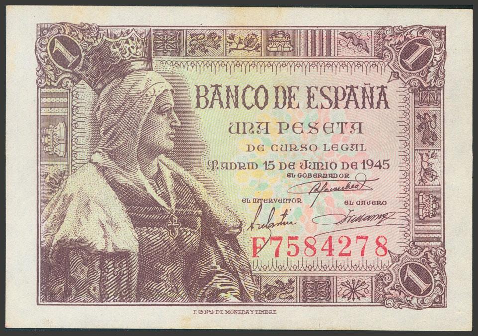 1 Peseta. 15 de Junio de 1943. Serie L. (Edifil 2017: 448a). Apresto original. EBC+.