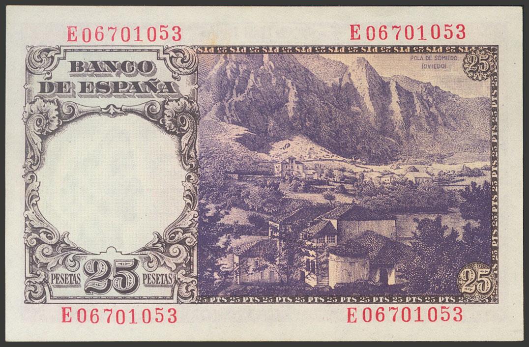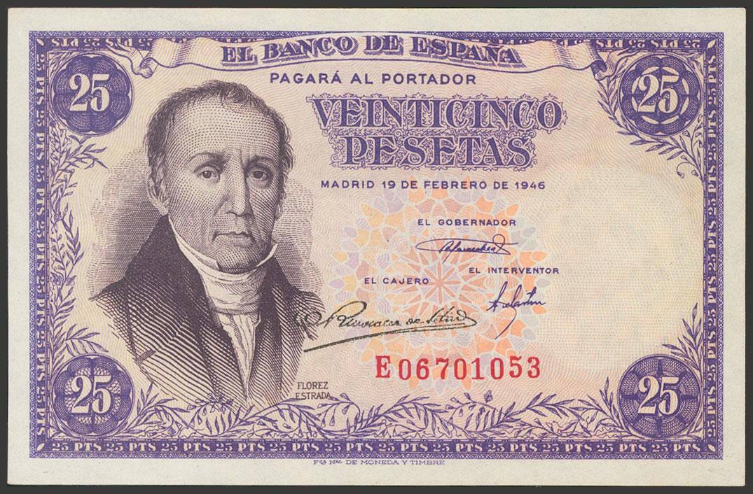 25 Pesetas. 19 de Febrero de 1946. Serie E. (Edifil 2017: 450a). Apresto original. SC.