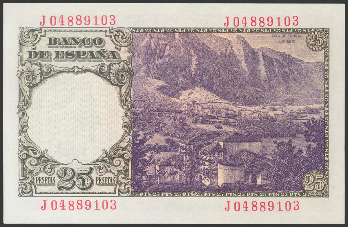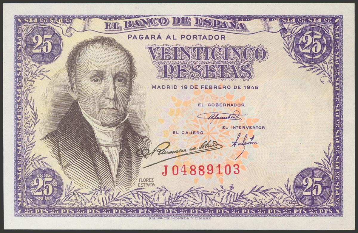 25 Pesetas. 19 de Febrero de 1946. Serie J. (Edifil 2017: 450a). Apresto original. SC.
