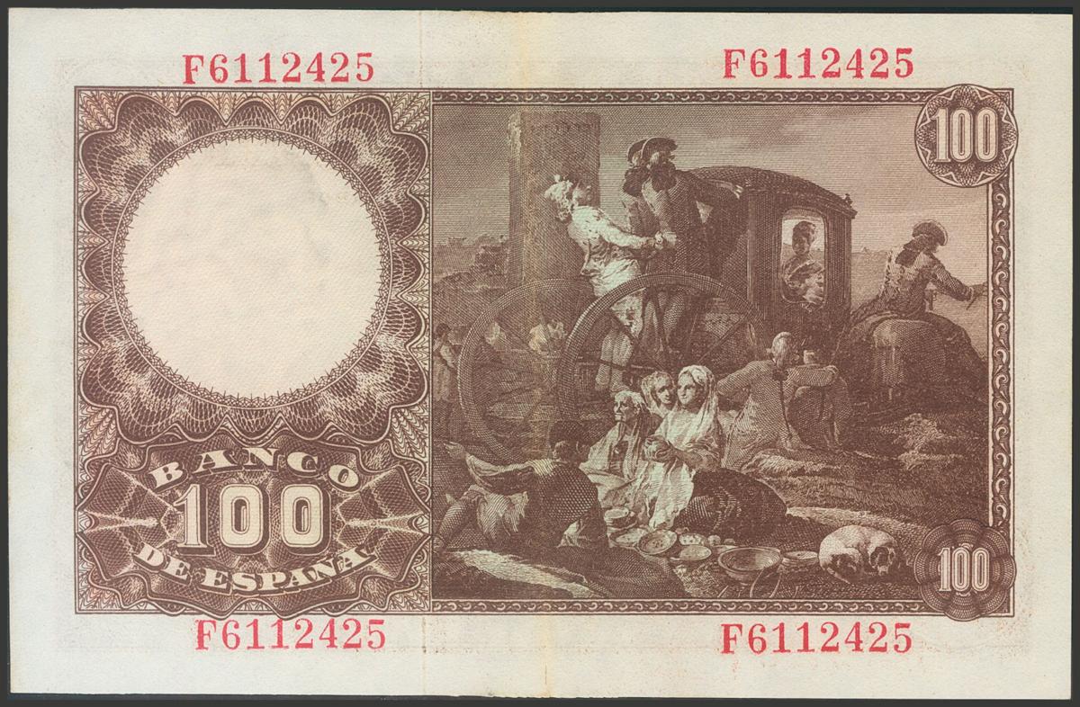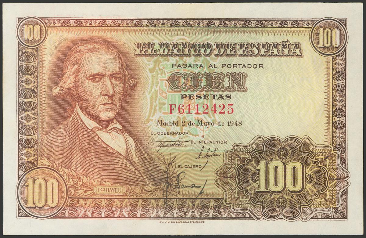 100 Pesetas. 2 de Mayo de 1948. Serie F. (Edifil 2017: 456a). Conserva parte del apresto original. EBC+.