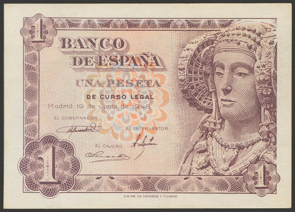 1 Peseta. 19 de Junio de 1948. Sin serie. (Edifil 2017: 457). Apresto original. SC-.