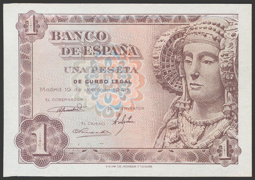 1 Peseta. 19 de Junio de 1948. Serie B. (Edifil 2017: 457a). Apresto original. SC.