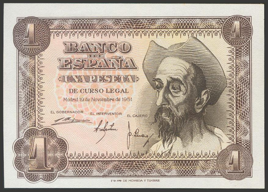 1 Peseta. 19 de Noviembre de 1951. Serie B. (Edifil 2017: 461a). Apresto original. SC.