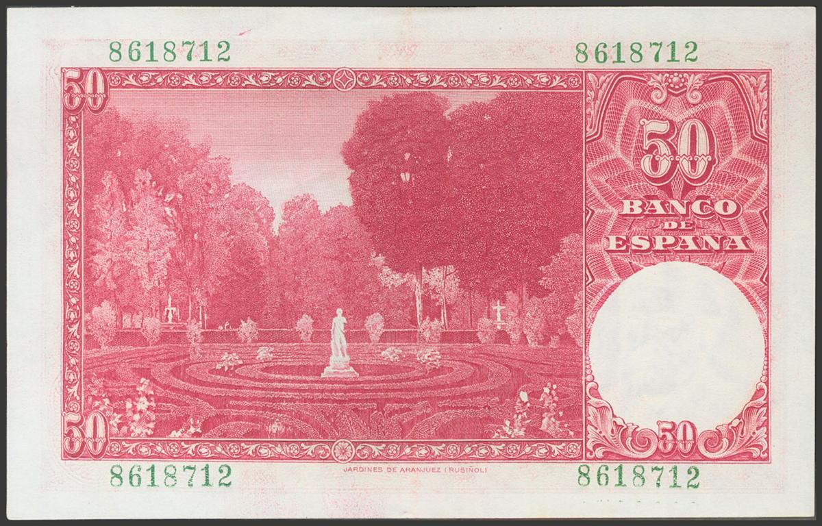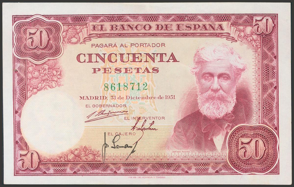 50 Pesetas. 31 de Diciembre de 1951. Sin serie. (Edifil 2017: 462). Conserva todo su apresto original. EBC+.El importe de la liquidación de este lote irá destinado a Manos Unidas.