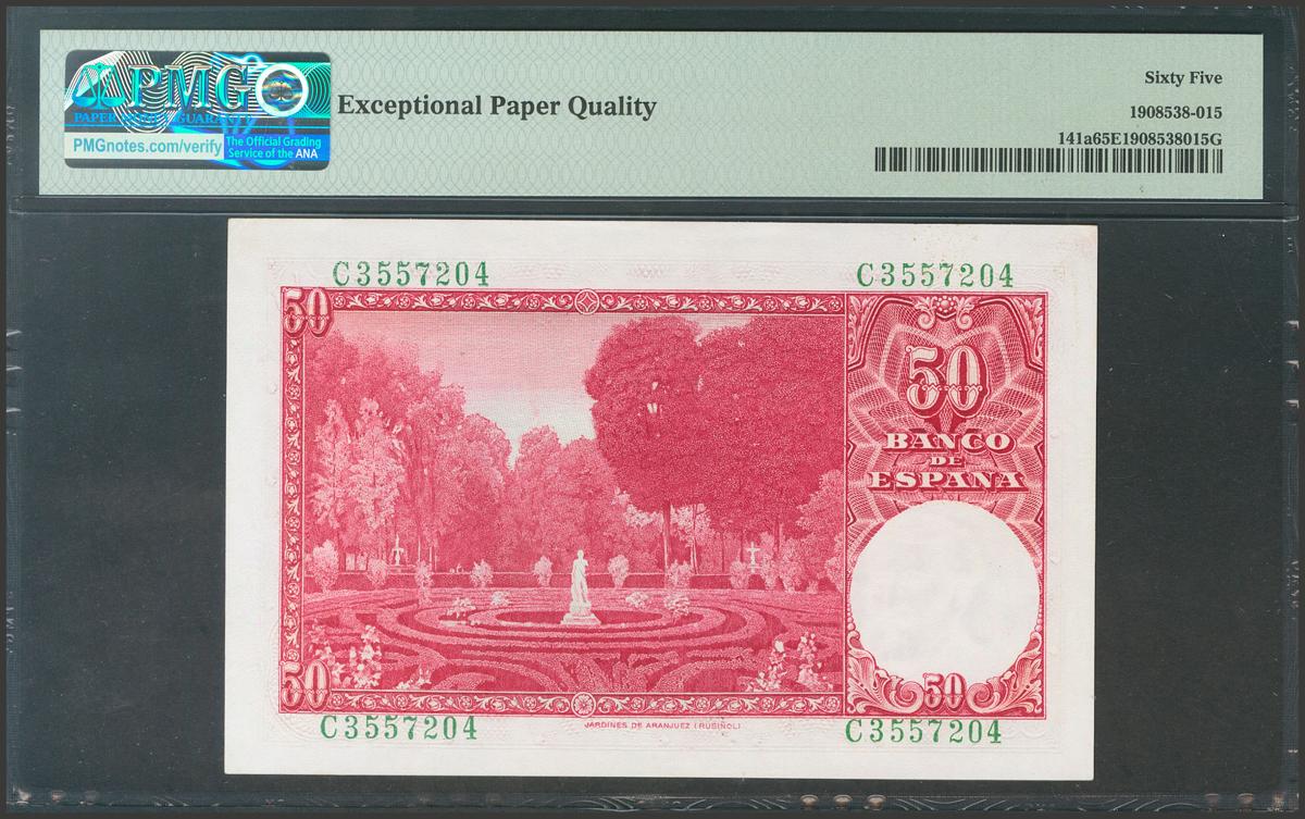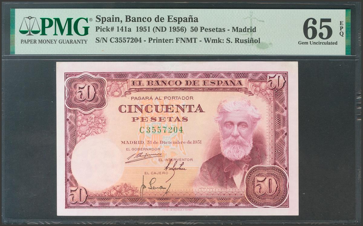 50 Pesetas. 31 de Diciembre de 1951. Serie C, última serie emitida. (Edifil 2017: 462a). Conserva todo su apresto original. SC. Encapsulado 65EPQ.