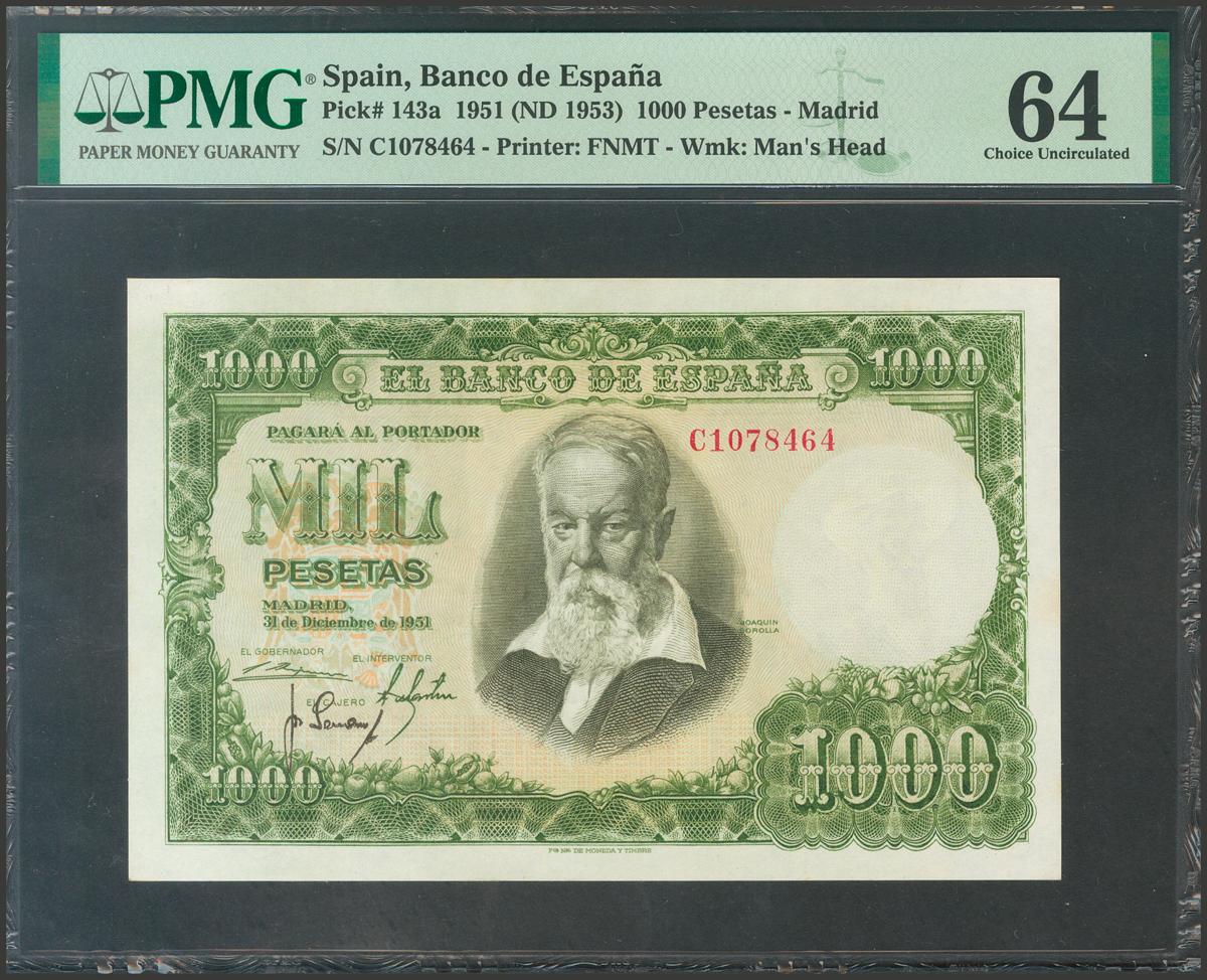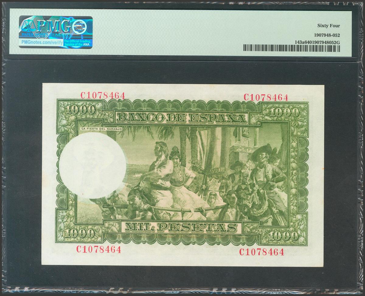 1000 Pesetas. 31 de Diciembre de 1951. Serie C. (Edifil 2017: 463a). Inusual en esta excepcional calidad. SC. Encapsulado PMG64.