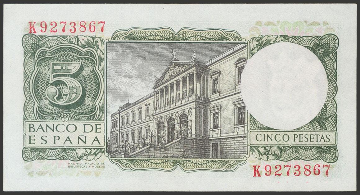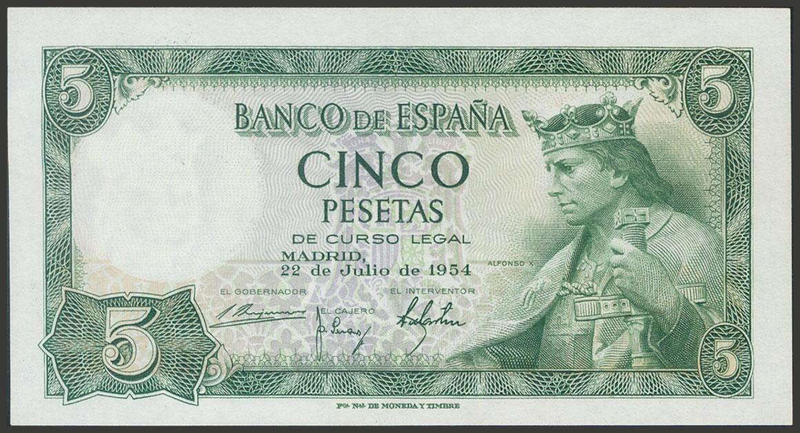 5 Pesetas. 22 de Julio de 1954. Serie K. (Edifil 2017: 466a). Conserva todo su apresto original. SC.