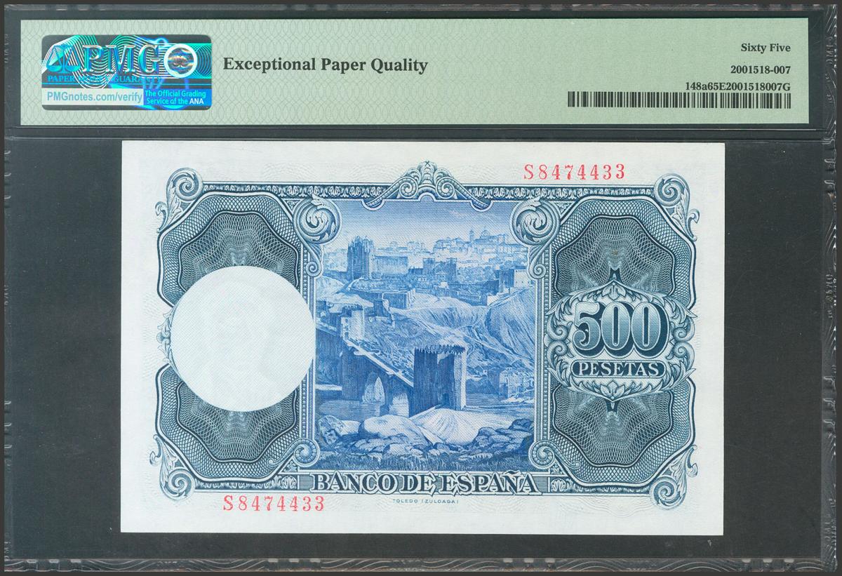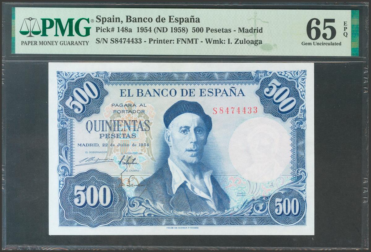 500 Pesetas. 22 de Julio de 1954. Serie S. (Edifil 2021: 468b). Apresto original. SC. Encapsulado PMG65EPQ.