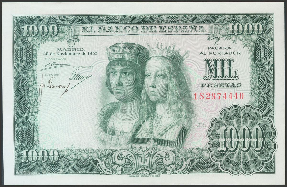 1000 Pesetas. 29 de Noviembre de 1957. Serie 1V. (Edifil 2017: 469b). Conserva todo su apresto original. SC--.