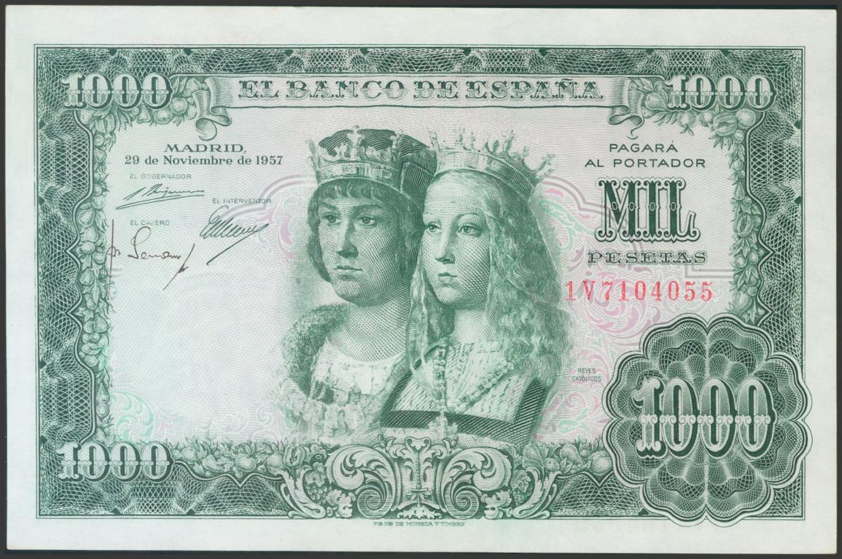 1000 Pesetas. 29 de Noviembre de 1957. Serie 1V. (Edifil 2017: 469b). Conserva la mayor parte del apresto. SC-.