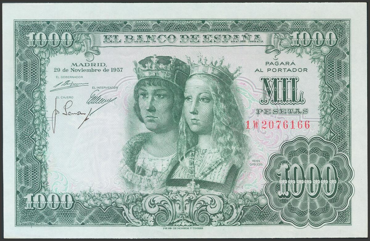 1000 Pesetas. 29 de Noviembre de 1957. Serie 1W. (Edifil 2017: 469b). Conserva todo su apresto original. EBC+.