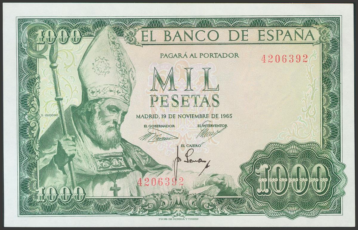 1000 Pesetas. 19 de Noviembre de 1965. Sin serie. (Edifil 2017: 471). Apresto original. SC.