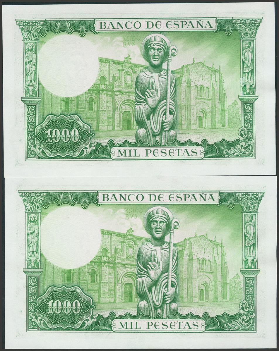 1000 Pesetas. 19 de Noviembre de 1965. Pareja correlativa. Serie I. (Edifil 2017: 471b). Apresto original. SC.
