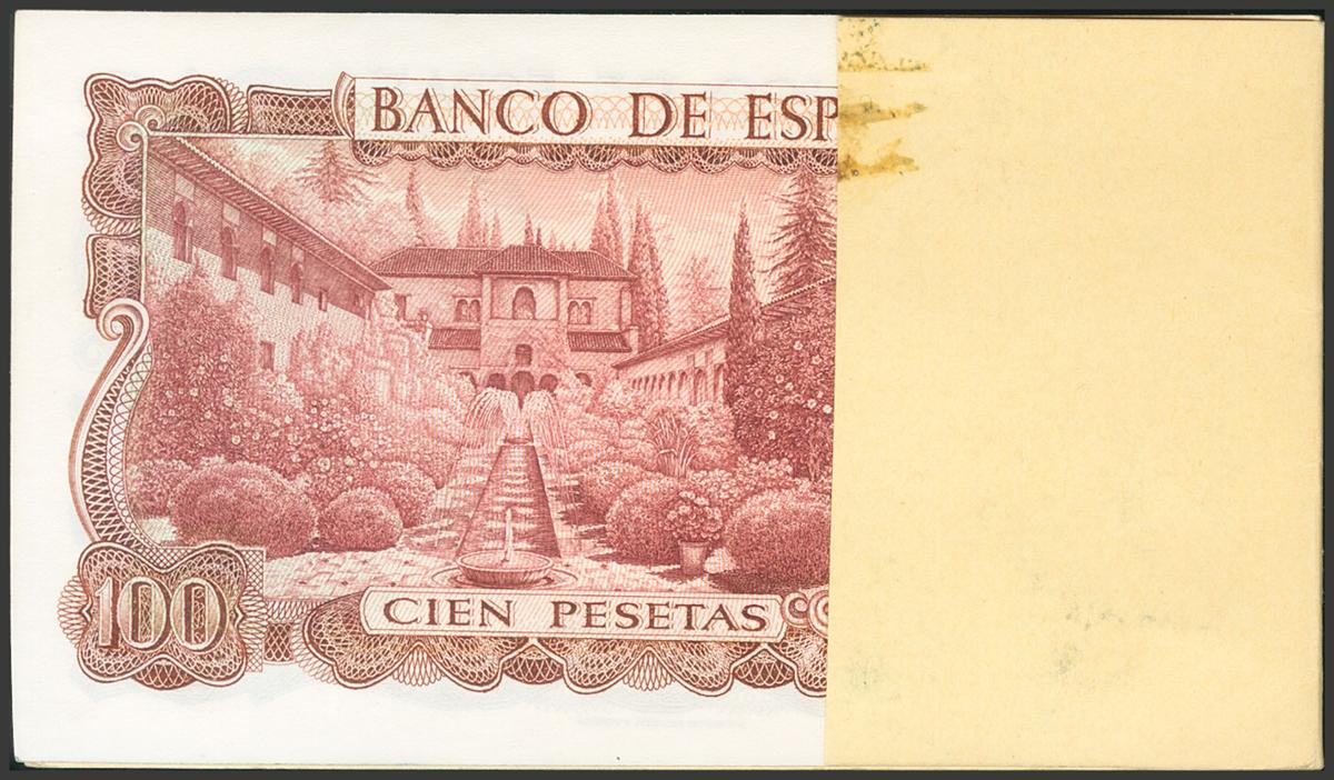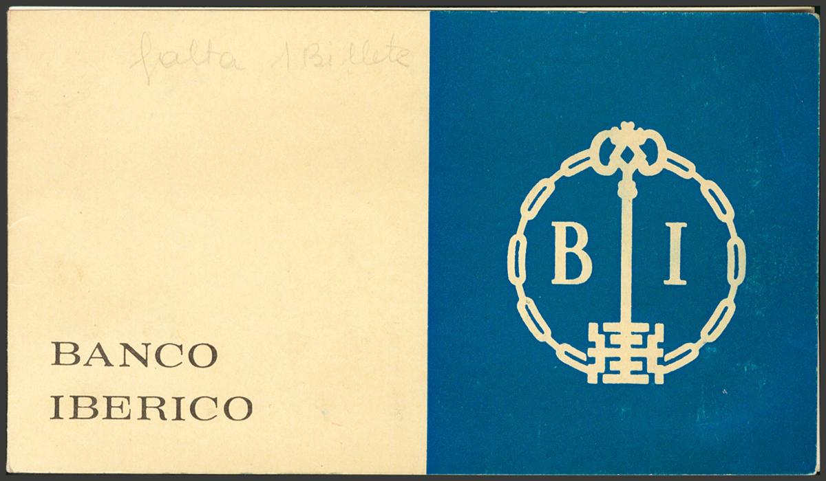 Talonario (la solapa trasera está incompleta) del Banco Ibérico de 9 billetes (a falta de un billete) correlativos de 100 Pesetas emitidos el 17 de Noviembre de 1970, con la serie 1B. (Edifil 2017: 472c). Muy interesante. SC.