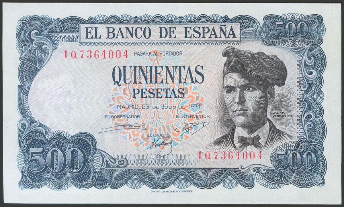 500 Pesetas. 23 de Julio de 1971. Serie 1Q. (Edifil 2017: 473a). Conserva todo su apresto original. SC-.
