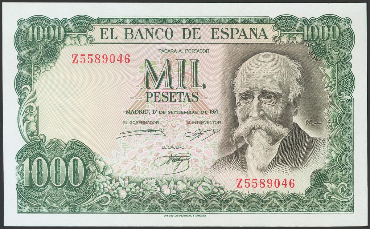 1000 Pesetas. 17 de Noviembre de 1971. Serie Z. (Edifil 2017: 474b). Apresto original. SC.