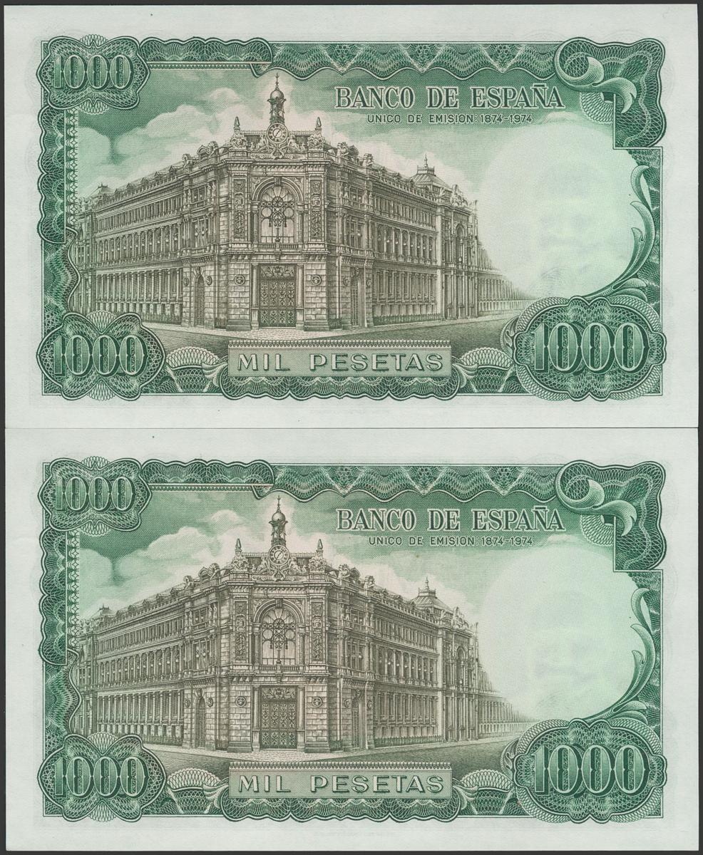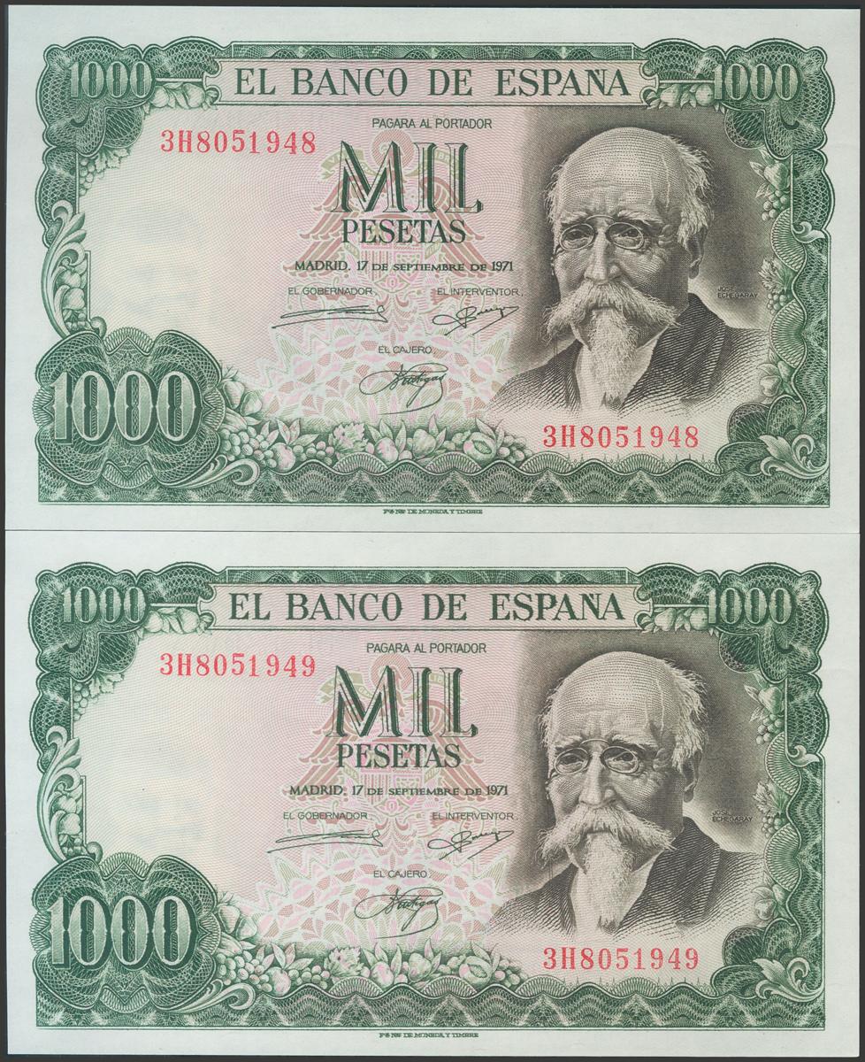 1000 Pesetas. 17 de Septiembre de 1971. Pareja correlativa. Serie 3H. (Edifil 2017: 474c). Apresto original. SC.