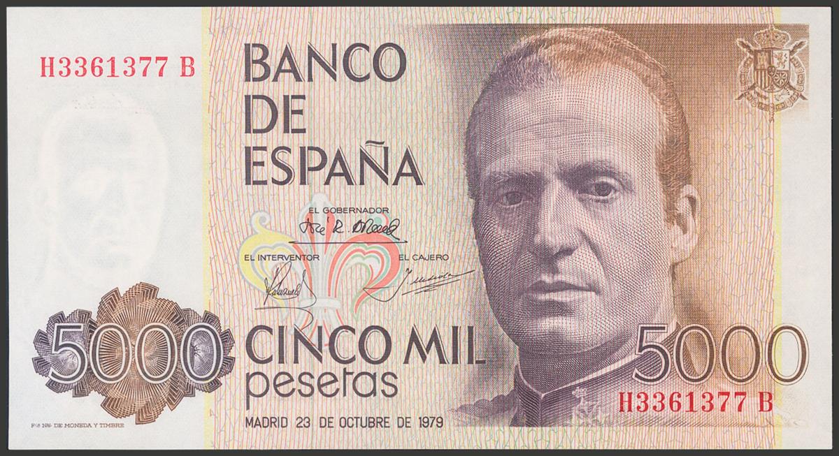 5000 Pesetas. 23 de Octubre de 1979. Serie H-B. (Edifil 2017: 478a). SC-.