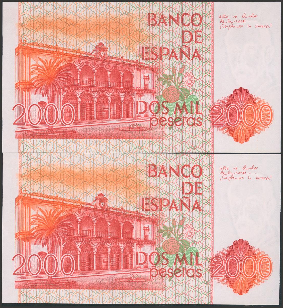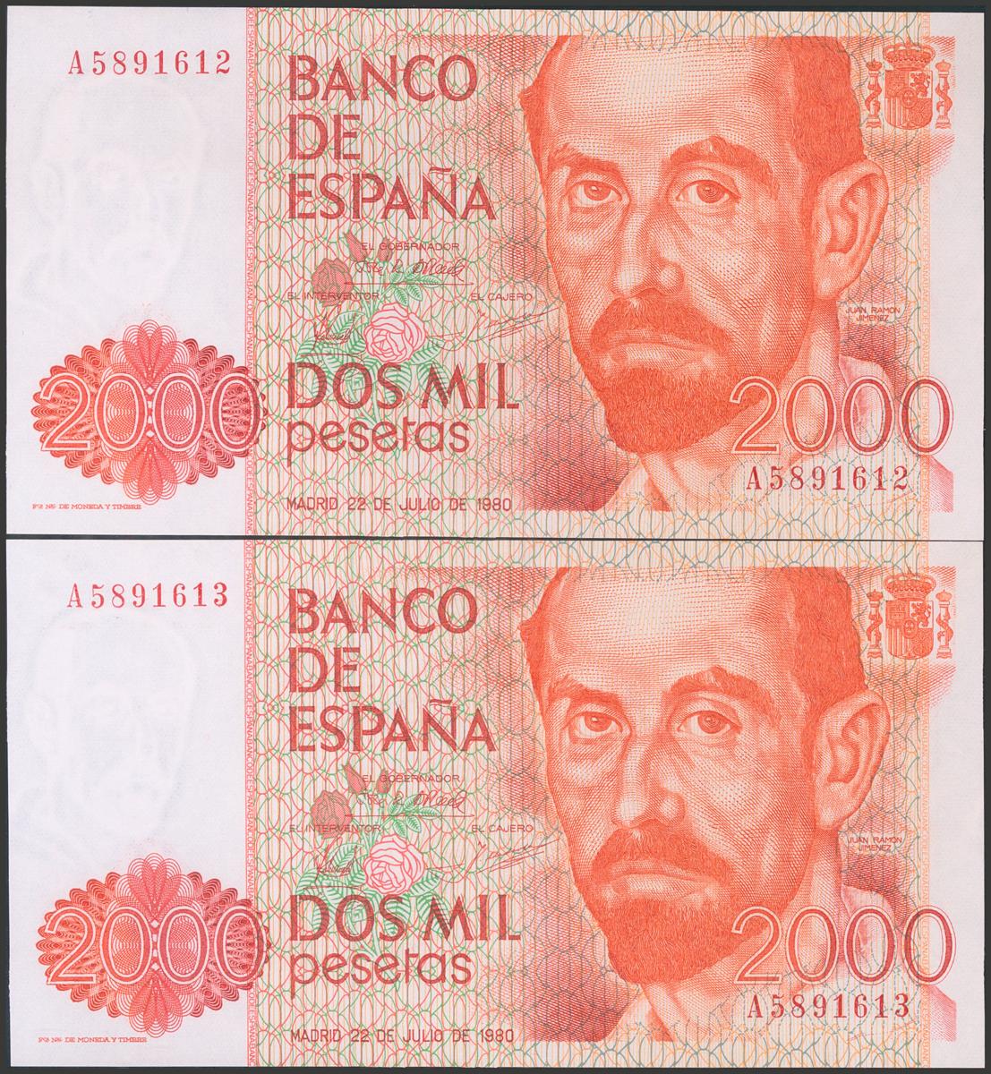 2000 Pesetas. 22 de Julio de 1980. Pareja correlativa. Serie A. (Edifil 2017: 479a). SC.