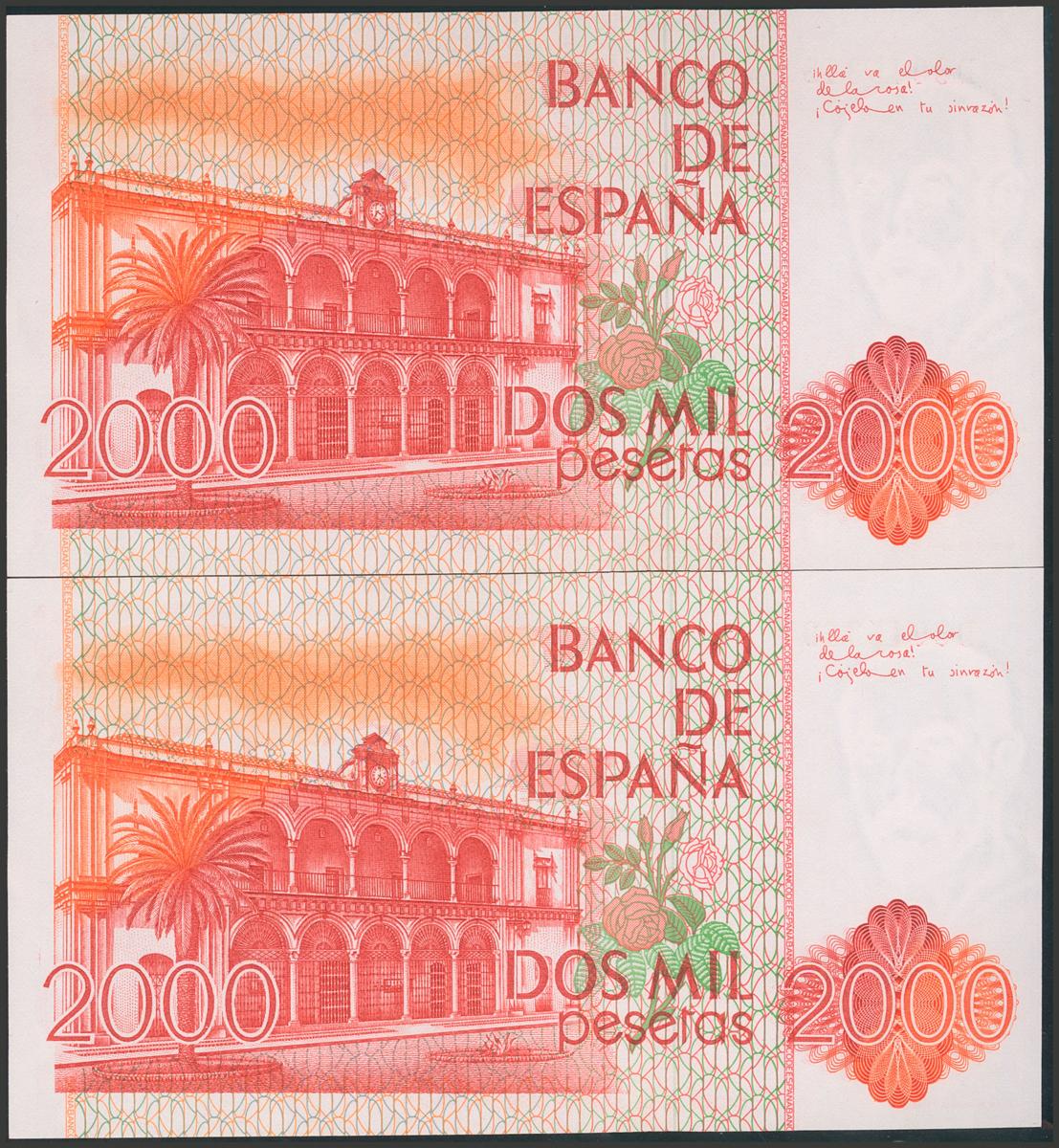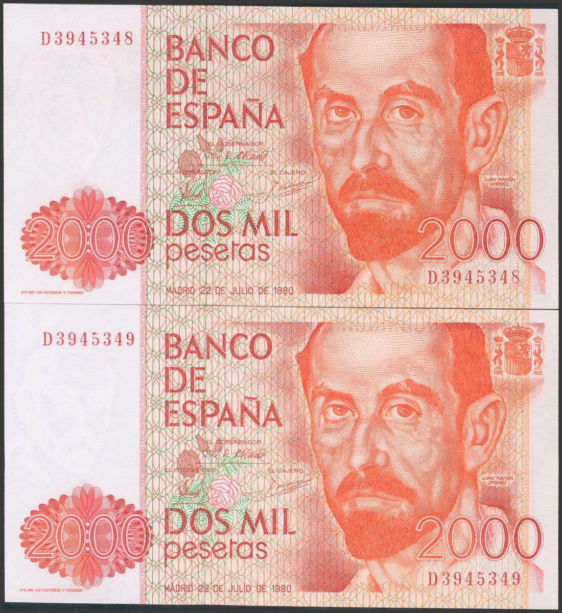 2000 Pesetas. 22 de Julio de 1980. Pareja correlativa. Serie D. (Edifil 2017: 479a). SC.
