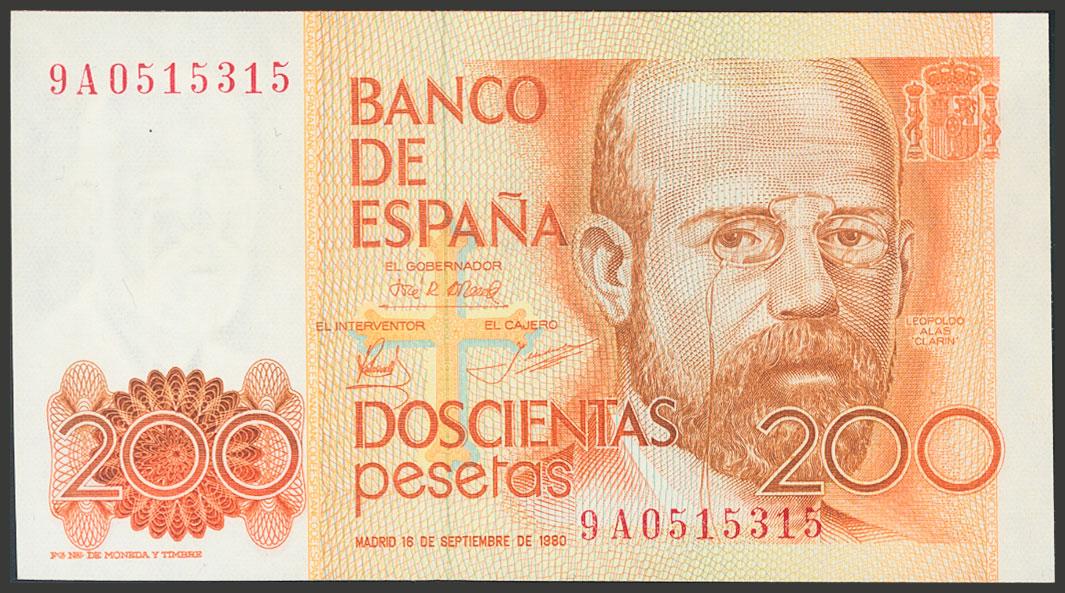 200 Pesetas. 16 de Septiembre de 1980. Serie especial 9A. (Edifil 2017: 480b). SC.
