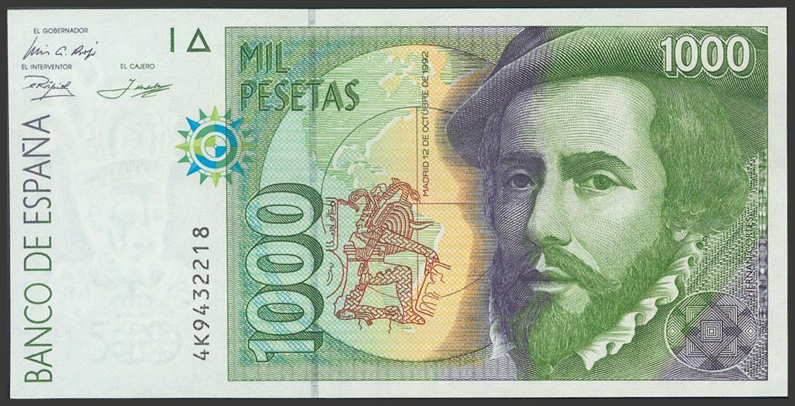 1000 Pesetas. 12 de Octubre de 1992. Tipo II párpado oscuro. Serie 4K. (Edifil 2017: 483b). SC.