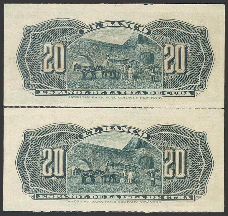 BANCO ESPAÑOL DE LA ISLA DE CUBA. 20 Centavos. 15 de Febrero de 1897. Pareja correlativa. Serie I. (Edifil 2017: 85). SC-.