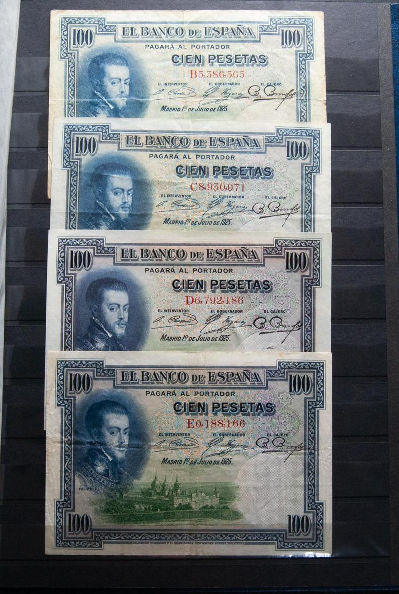 Conjunto de 56 billetes del Banco de España de diferentes emisiones y diversas calidades, algunos muy interesantes. A EXAMINAR.