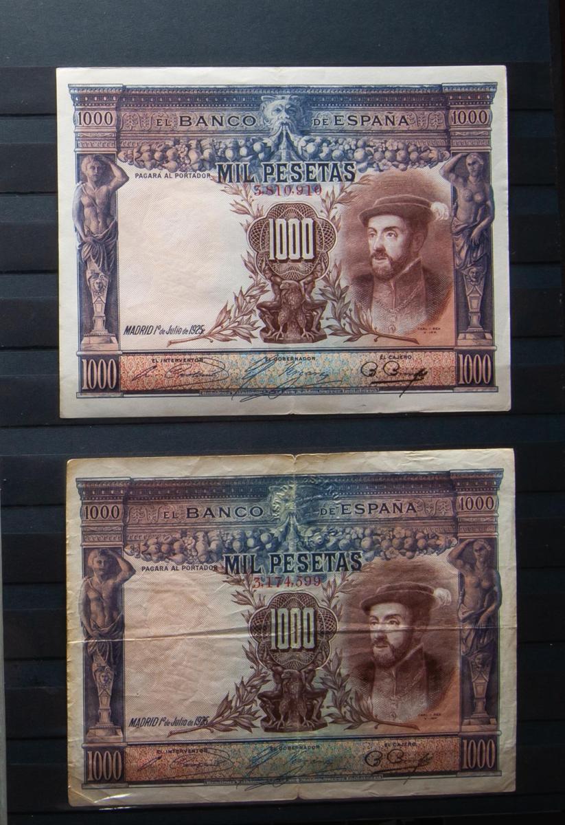 Conjunto de más de 250 billetes del Banco de España, todos ellos emitidos en el siglo XX, algunos de ellos muy interesantes y en calidades diversas, algún no circulado especialmente del periodo más moderno, se incluyen además dos billetes extranjeros. A EXAMINAR.El importe de la liquidación de este lote irá destinado a Manos Unidas.