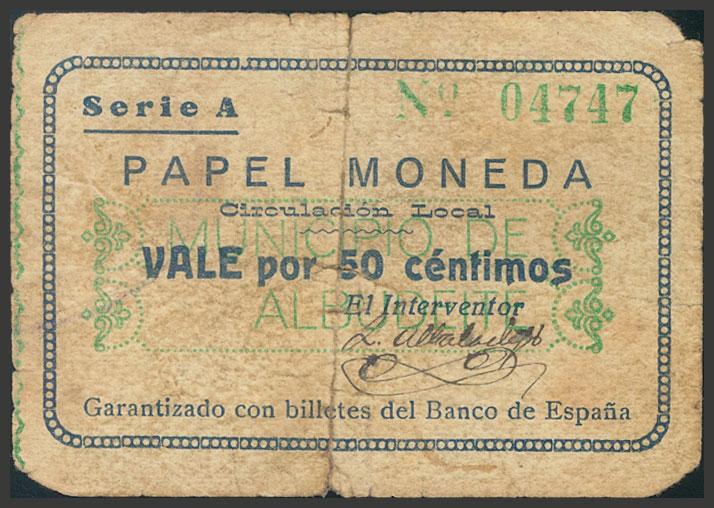 ALBUDEITE (MURCIA). 50 Céntimos. (1937ca). Serie A. (González: 243). Raro. BC.
