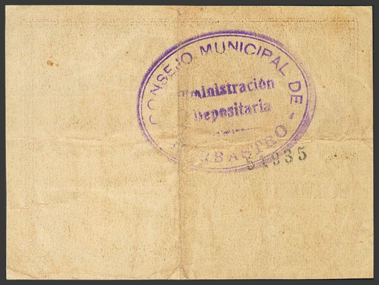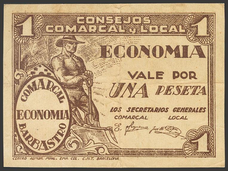 BARBASTRO (HUESCA). 1 Peseta. (1937ca). (González: 883). Inusual. MBC.