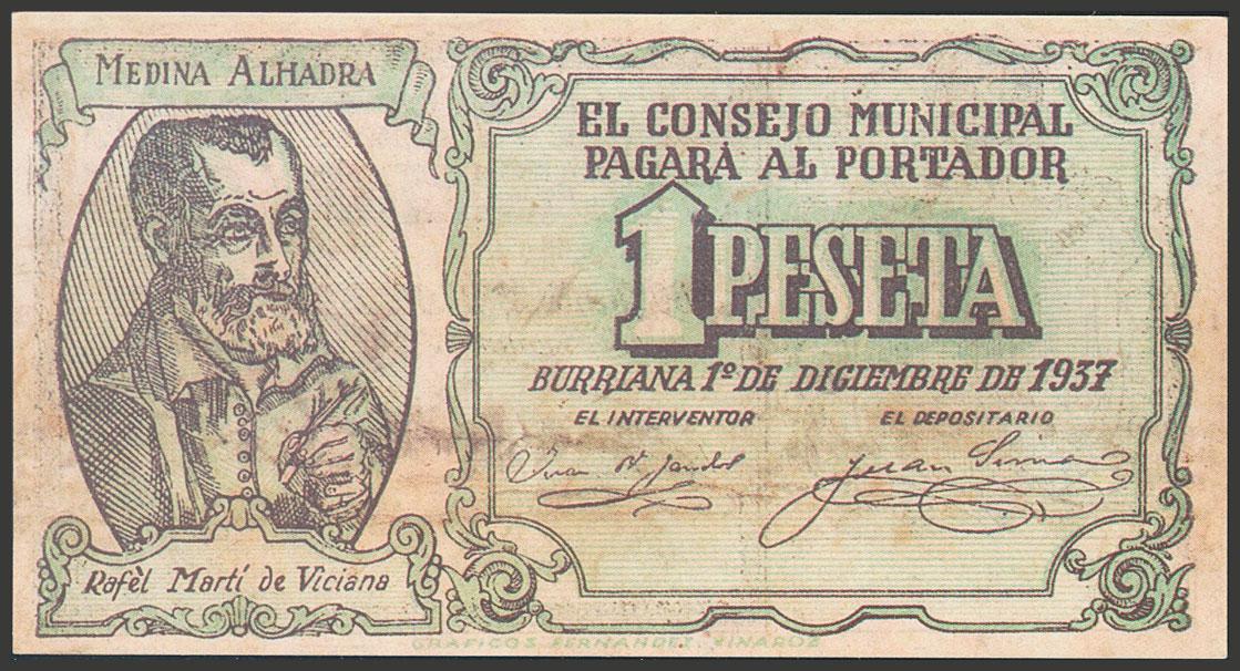 BURRIANA (CASTELLON). 1 Peseta. 1 de Diciembre de 1937. (González: 1337). Inusual. MBC+.