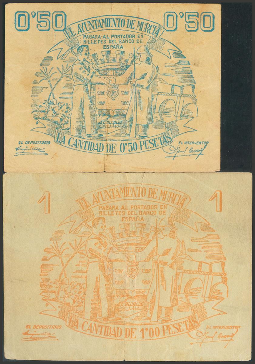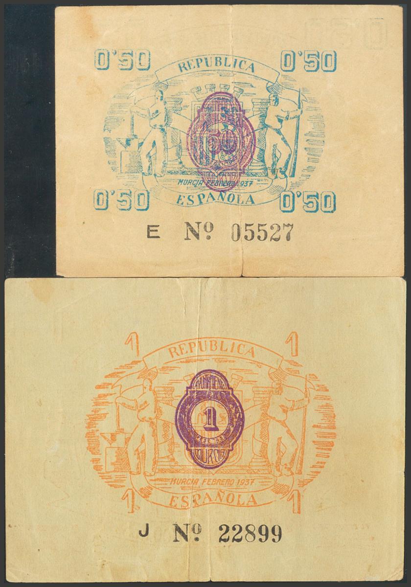 MURCIA. 50 Céntimos y 1 Peseta. (1937ca). (González: 3768/69). Rara serie completa. MBC+.