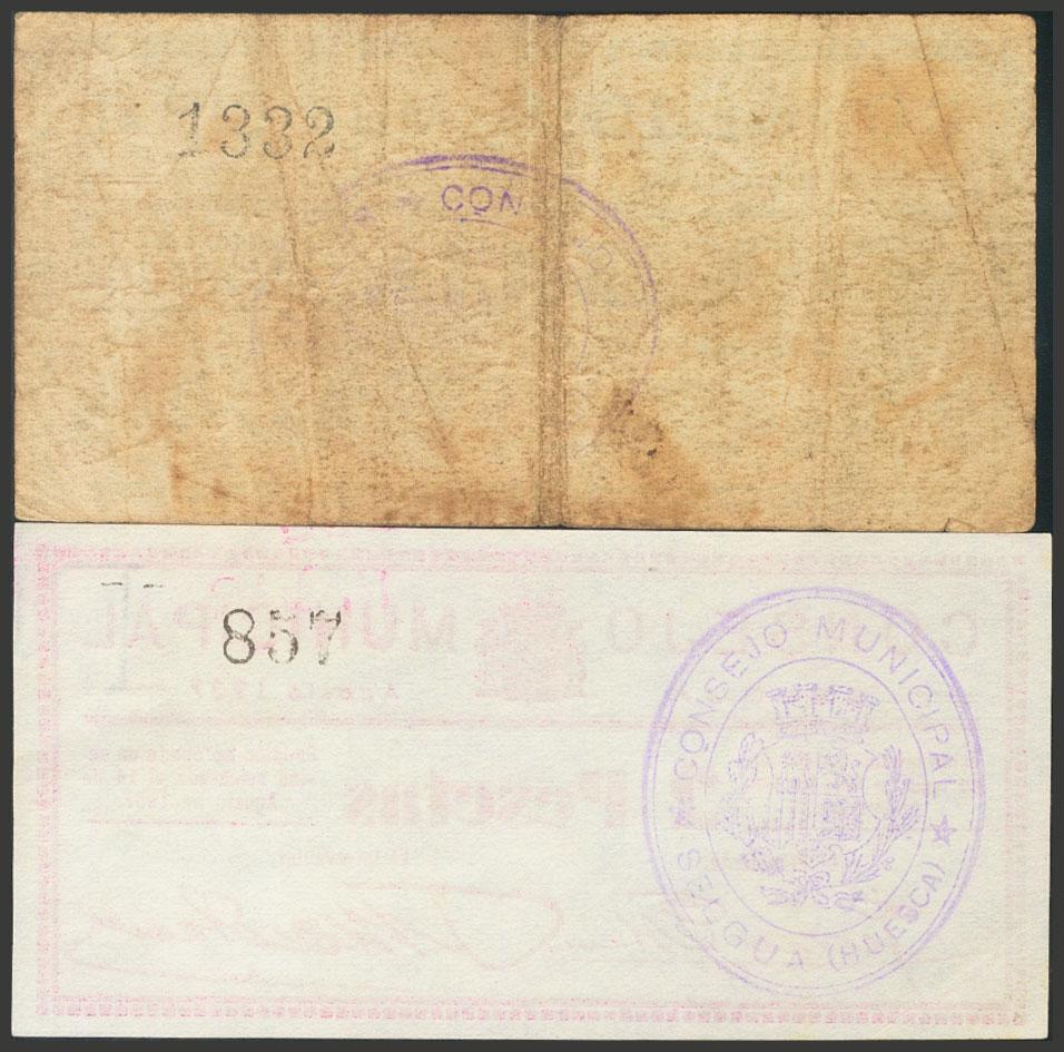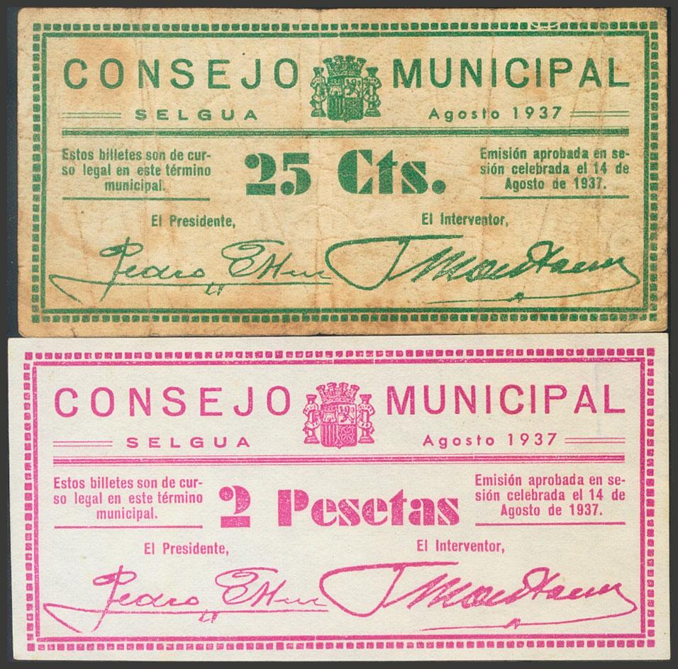 SELGUA (HUESCA). 25 Céntimos y 2 Pesetas. 14 de Agosto de 1937. (González: 4807, 4810). Inusuales. MBC/EBC+.