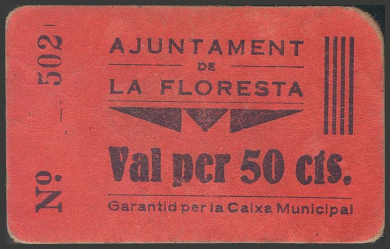 FLORESTA (LERIDA). 50 Céntimos. (1937ca). (González: 7899). Muy raro. MBC+.