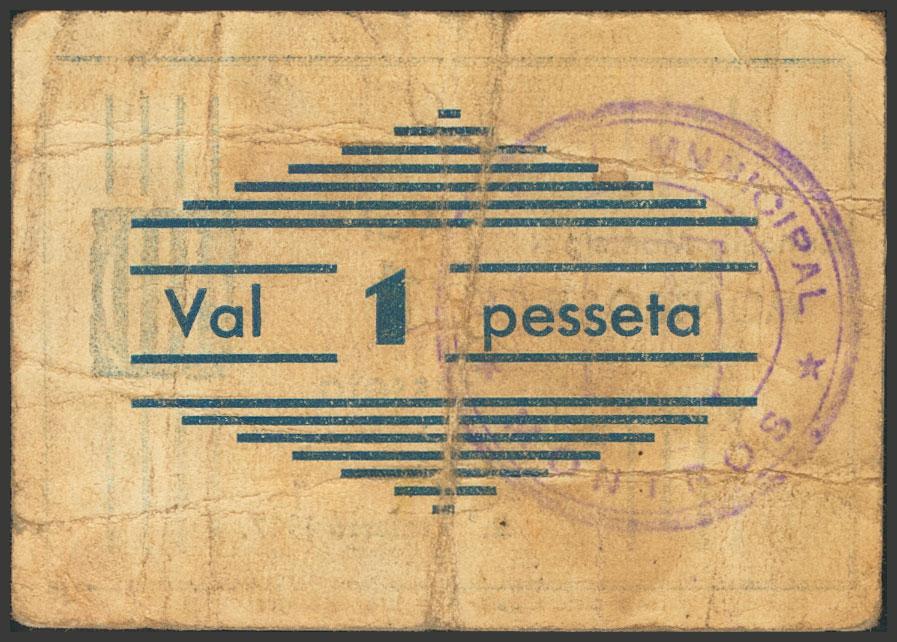 MONTROS (LERIDA). 1 Peseta. 1937. (González: 8829). Muy raro. MBC.