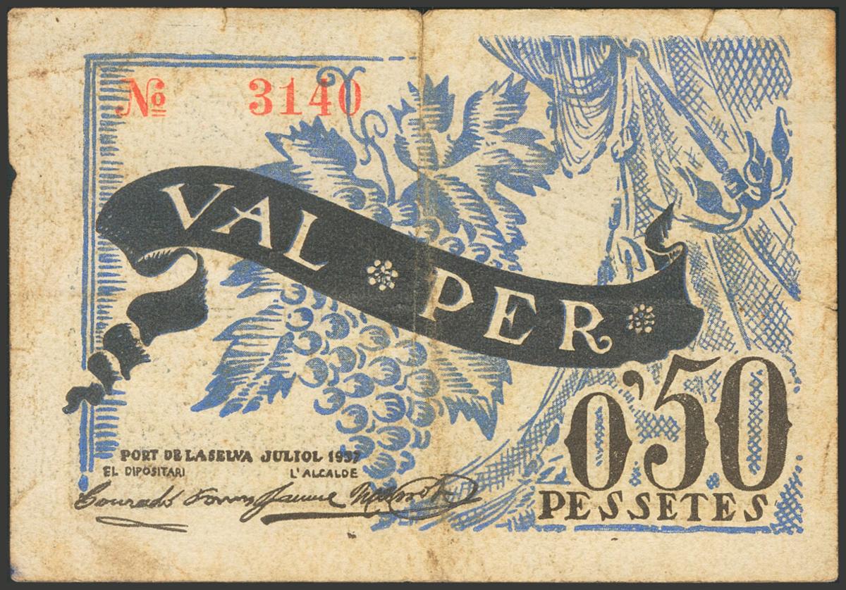 PORT DE LA SELVA (GERONA). 50 Céntimos. Junio 1937. (González: 9405). Inusual. MBC-.