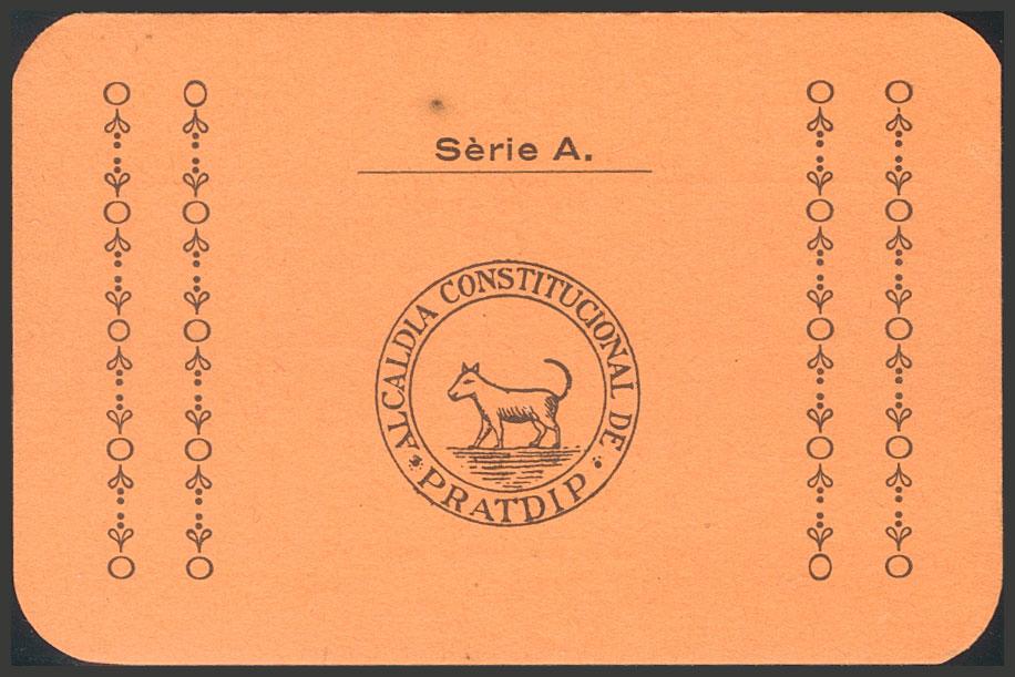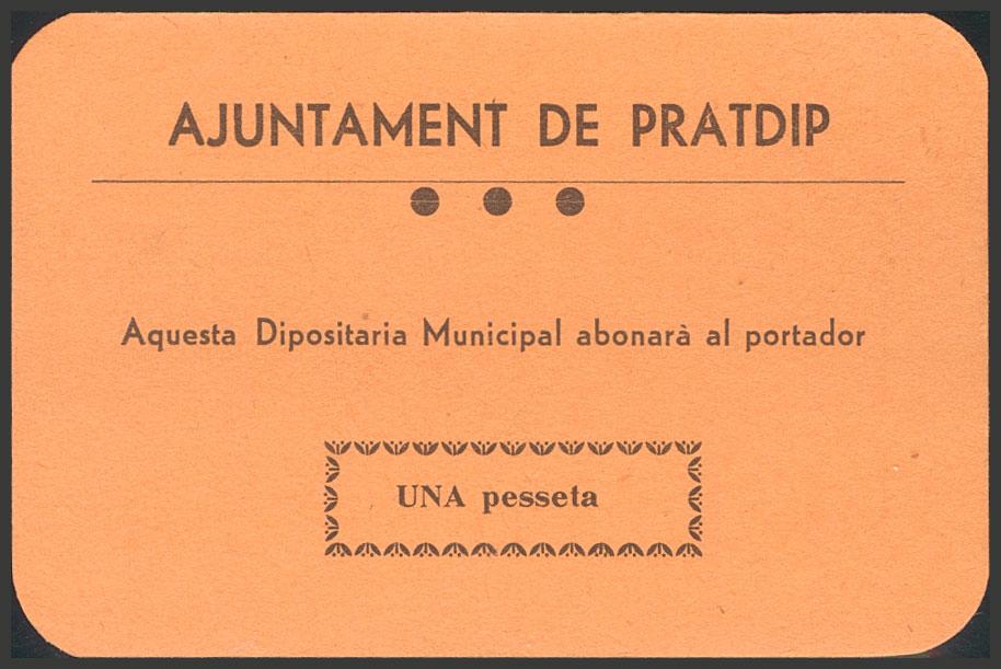 PRATDIP (TARRAGONA). 1 Peseta. (1937ca). Serie A. (González: 9436). Rarísimo, especialmente en esta calidad. SC.
