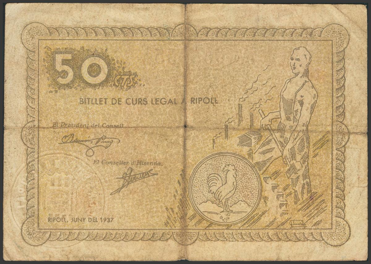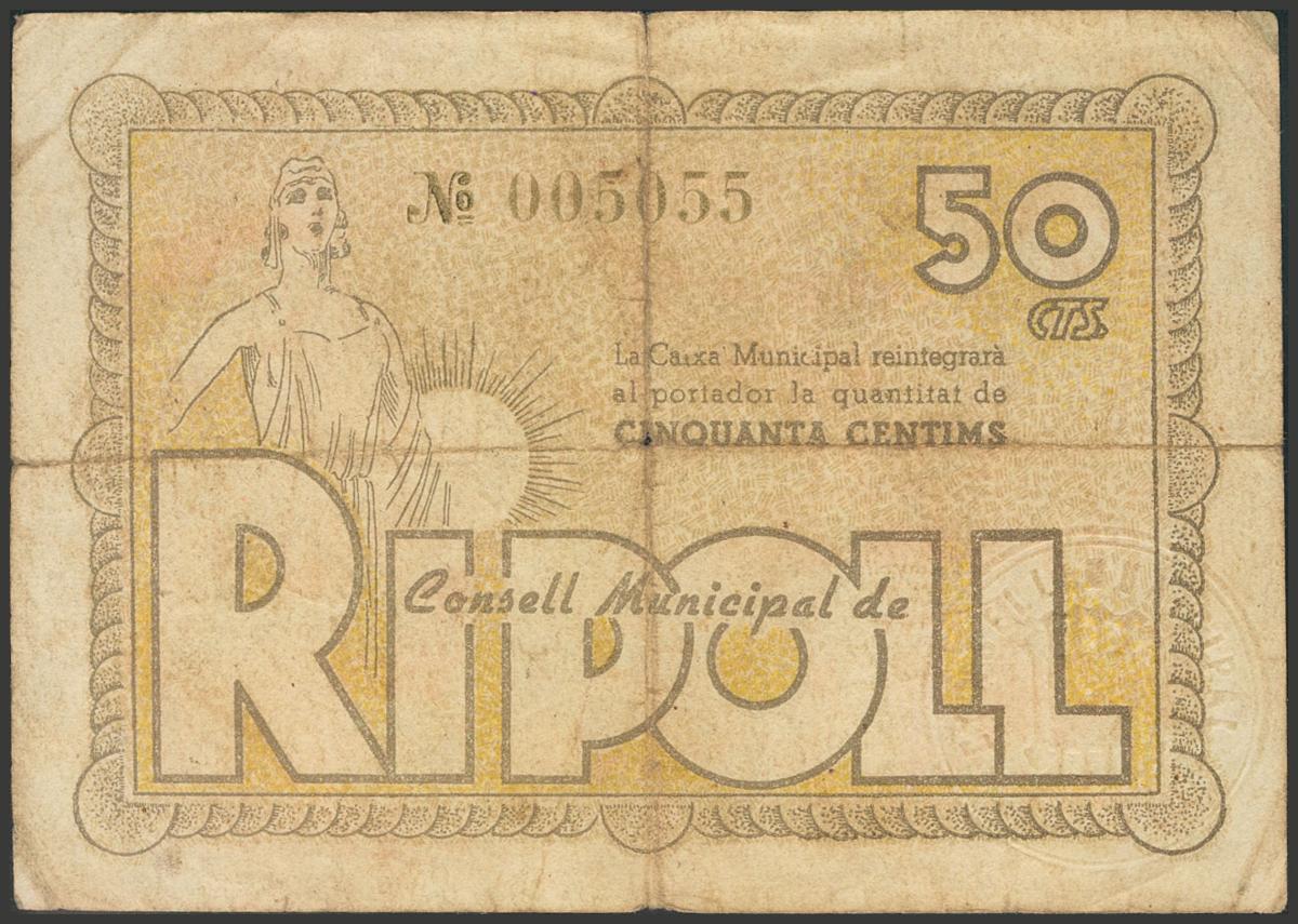 RIPOLL (GERONA). 50 Céntimos. Junio 1937. (González: 9647). BC+.