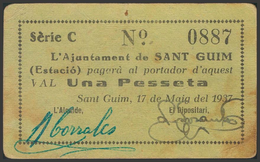 SANT GUIM-ESTACIO (LERIDA). 1 Peseta. 17 de Mayo de 1937. Serie C. (González: 9855). EBC.