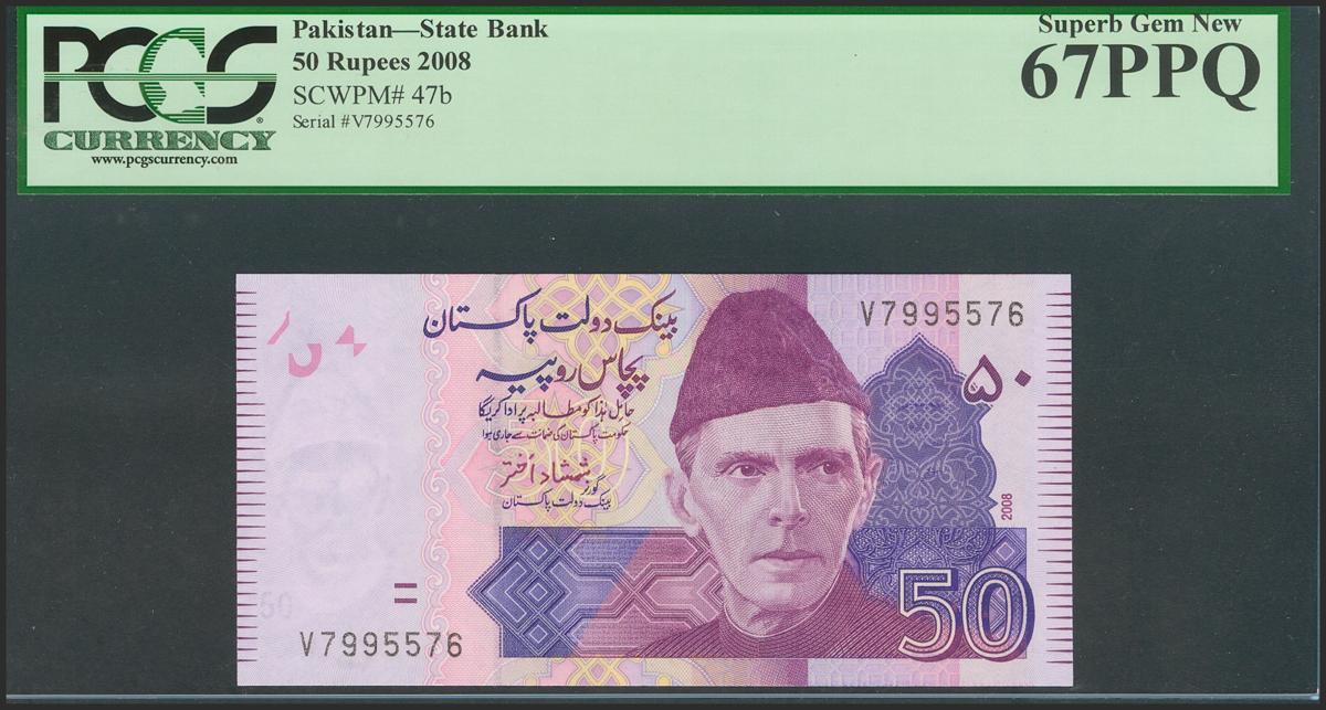 PAKISTAN. 50 Rupee. 2008. (Pick: 47b). PCGS67PPQ.