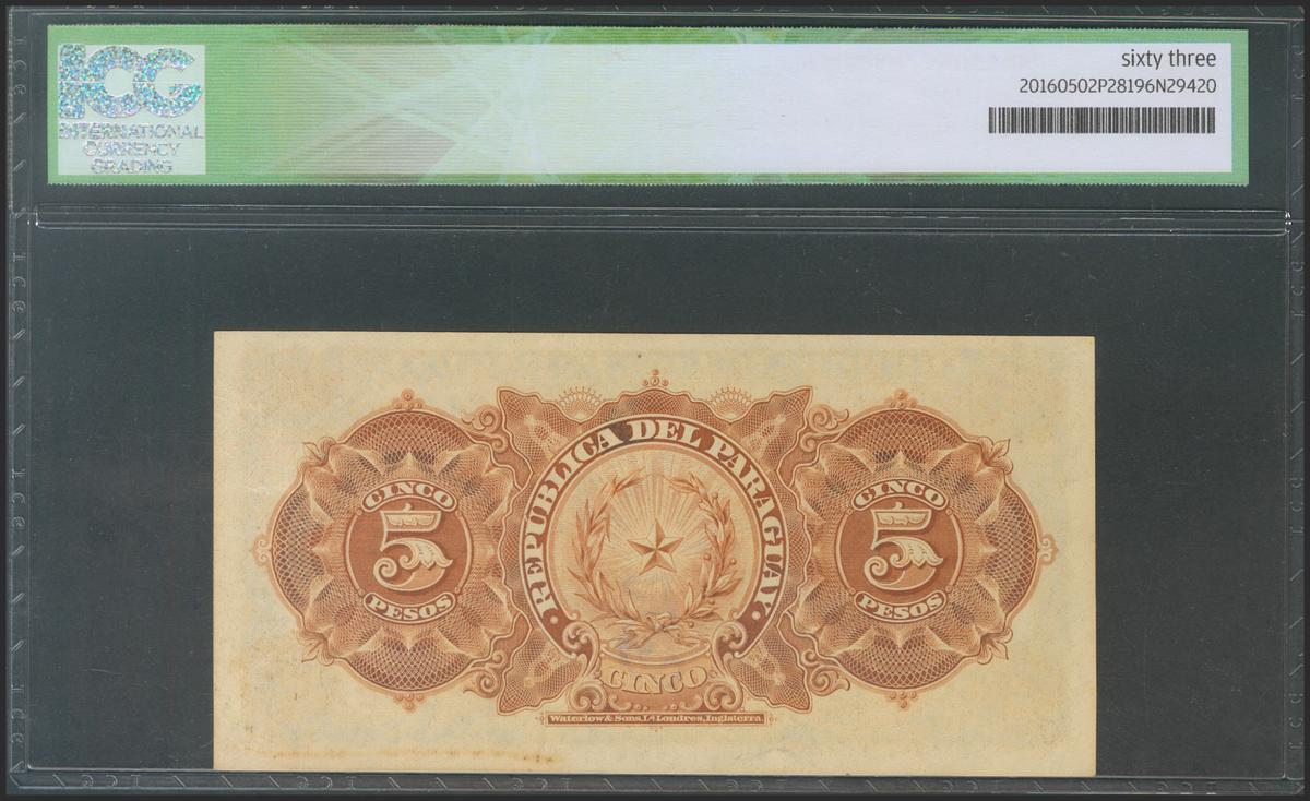 PARAGUAY. 5 Pesos. 1907. Serie A. (Pick: 156). ICG63.