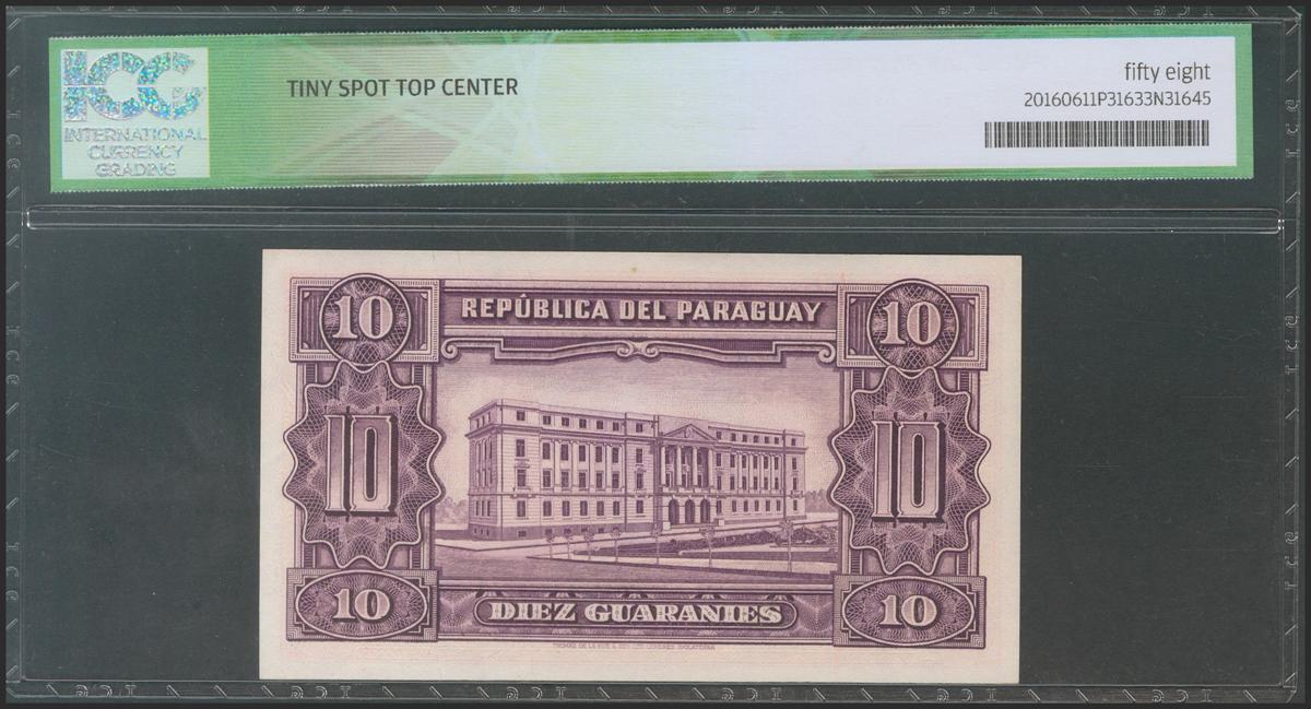 PARAGUAY. 10 Guaranies. 1952. Serie B. (Pick: 187c). ICG58* (Tiny spot top center).